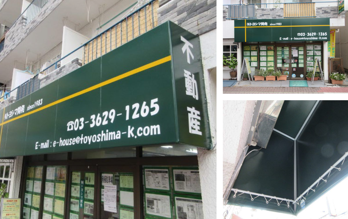 トヨシマ開発様から店舗改装に伴いテントデザインの刷新及び新設のご依頼をいただきました。