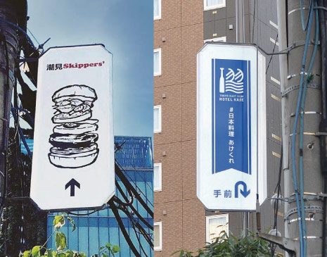 周辺の看板と比較し落ち着いた印象があり、逆にそのシンプルさが際立つ様に感じられます。