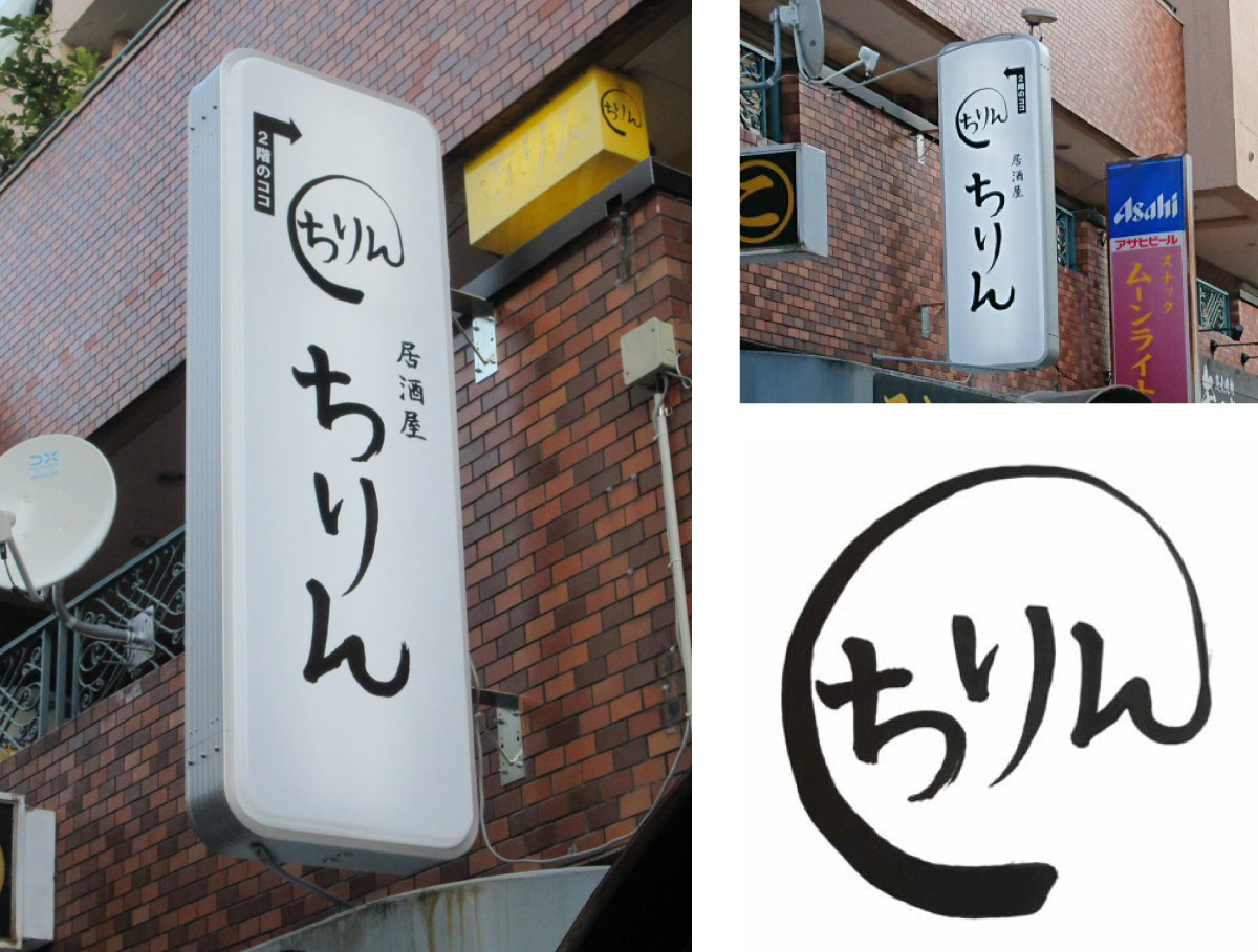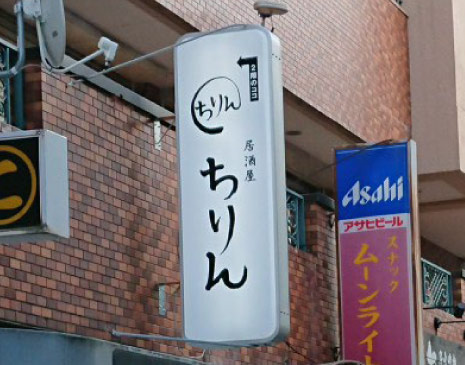 今は閉店した店舗看板がそのまま設置されていたため、「居酒屋ちりん」としての看板を新しく設置。