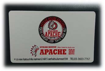 環七沿いにあるステーキハウスハウスアパッチ様から、ショップカードの追加のご依頼をいただきました。
