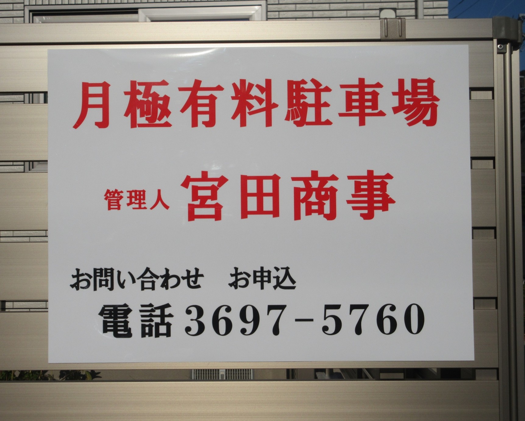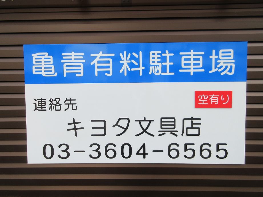 葛飾区立亀青小学校前にありますキヨタ文具店さまから、駐車場プレート看板の製作施工のご依頼をいただきました。