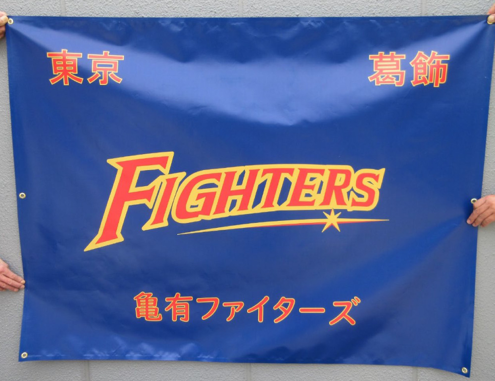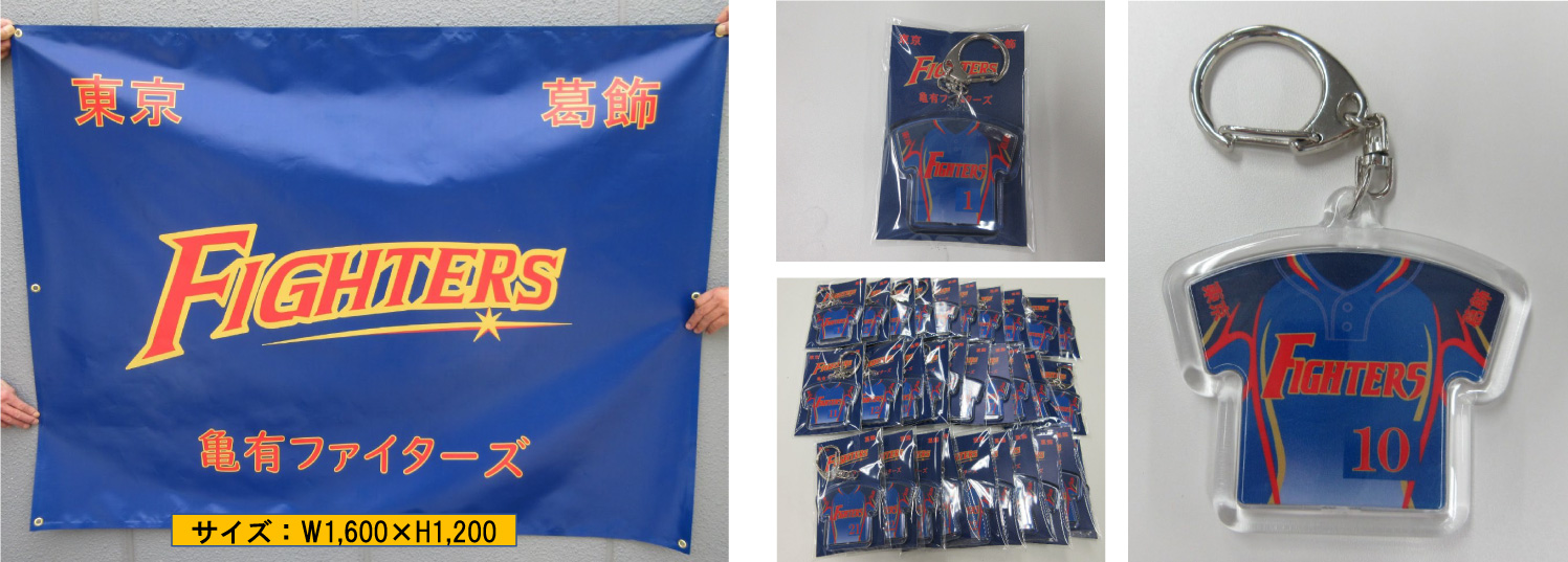 ソフトボールチーム亀有ファイターズ様からロゴマークシートに引き続き、ターポリン旗とチームキーホルダーのご注文をいただきました。