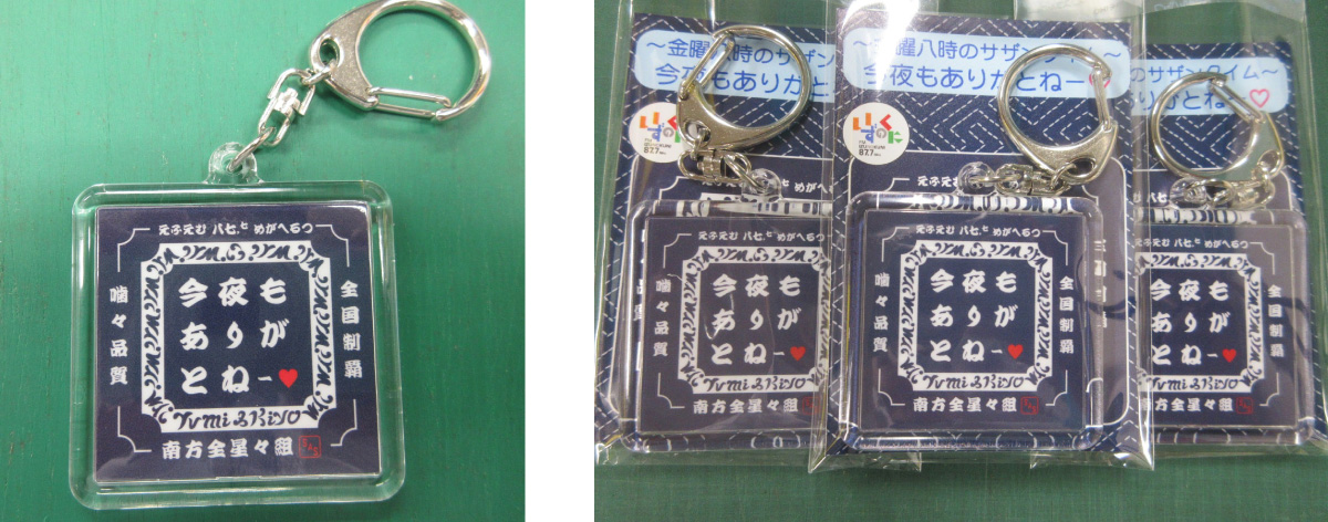 番組オリジナルステッカー、缶バッチに引き続き今回はキーホルダーのご依頼をいただきました。